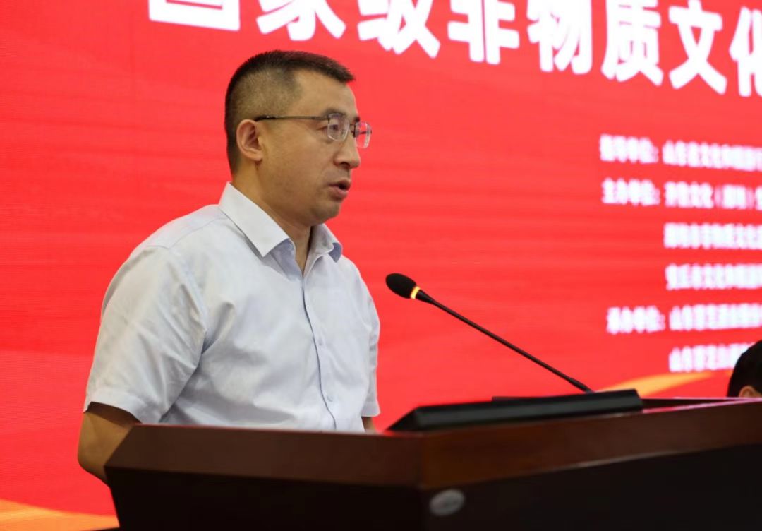 蔣士秋為景芝酒傳統釀造技藝授牌并發表講話。他表示,“景芝酒傳統釀造技藝”被國務院公布為第五批國家級非物質文化遺產代表性項目,實現了全省非遺領域白酒行業國家級項目零的突破。希望景芝白酒和有關部門以這次國家級非遺項目授牌為契機,不斷完善景芝酒保護傳承體系、不斷提升景芝酒保護傳承水平,打造文化兩創新標桿,把這一國字號品牌保護好、傳承好、推廣好,推進全省非遺高質量發展、創新發展,為推動新時代社會主義現代化強省建設作出新貢獻。