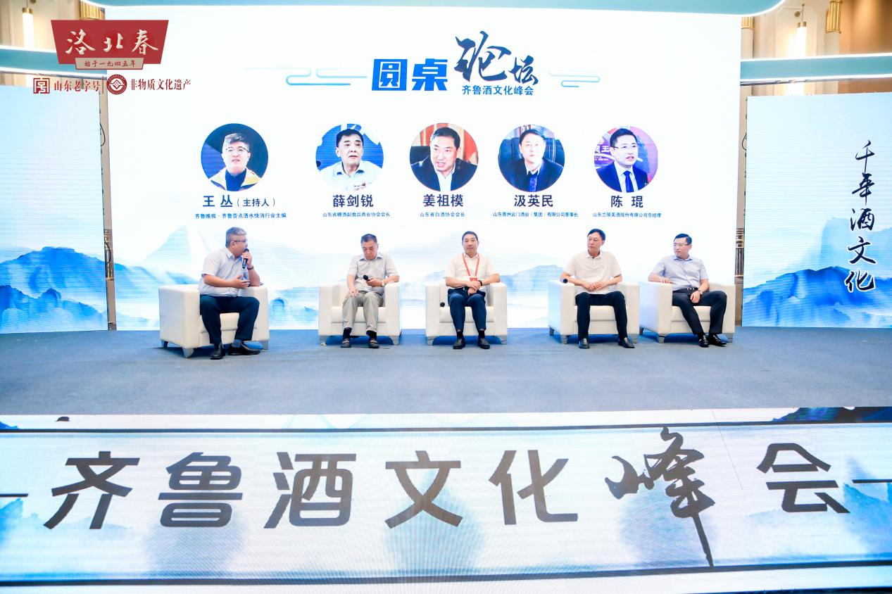 峰會現場,還邀請到了多位行業大咖圍繞魯酒搶抓時代機遇,共促產業騰飛等話題展開圓桌對話。山東省糖酒副食品商業協會會長薛劍銳、山東省白酒協會會長姜祖模、山東青州云門酒業(集團)有限公司董事長汲英民、山東蘭陵美酒股份有限公司總經理陳琨分別分享了自己的真知灼見。圓桌論壇由齊魯晚報·齊魯壹點酒水快消行業主編王叢主持。