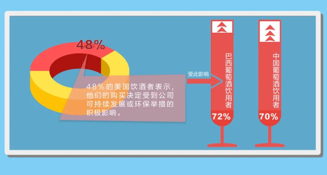 忠于本地品牌和企業也是疫情期間的主要趨勢,并且與消費者的可持續思維密切相關。例如,IWSR的消費者研究表明,48%的美國飲酒者表示,他們的購買決定受到公司可持續發展或環保舉措的積極影響。過去一年,受此影響的巴西葡萄酒飲用者增加了72%,中國葡萄酒飲用者增加了70%。