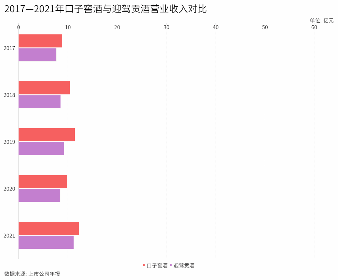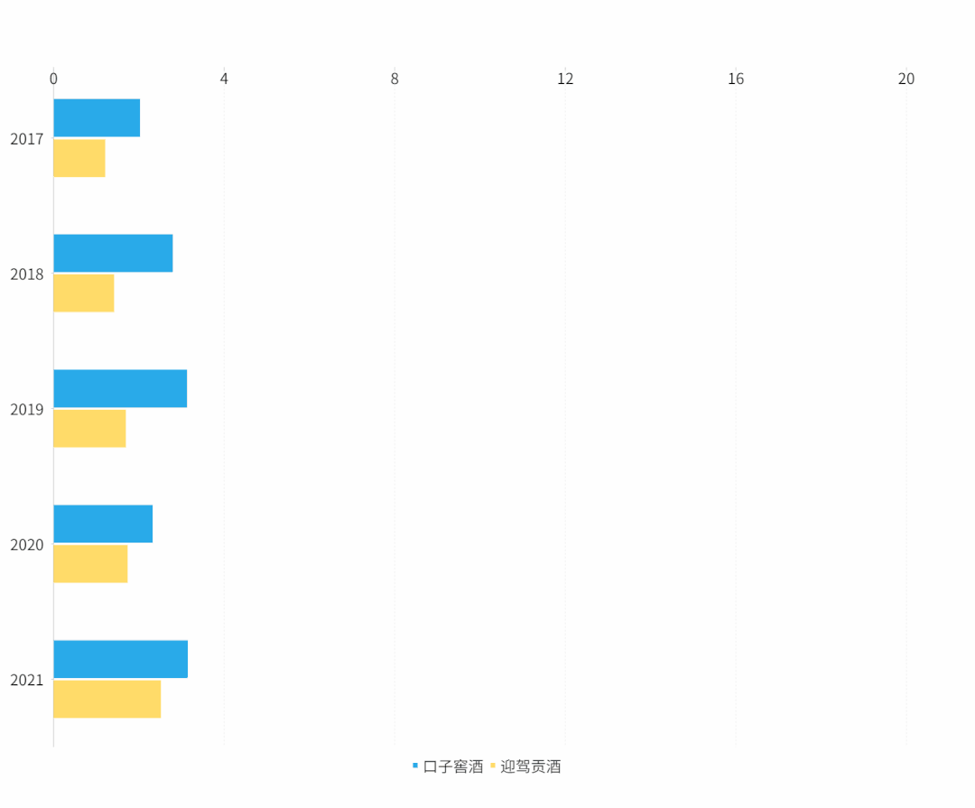 從2017年~2021年,口子窖一直領(lǐng)先迎駕貢酒。