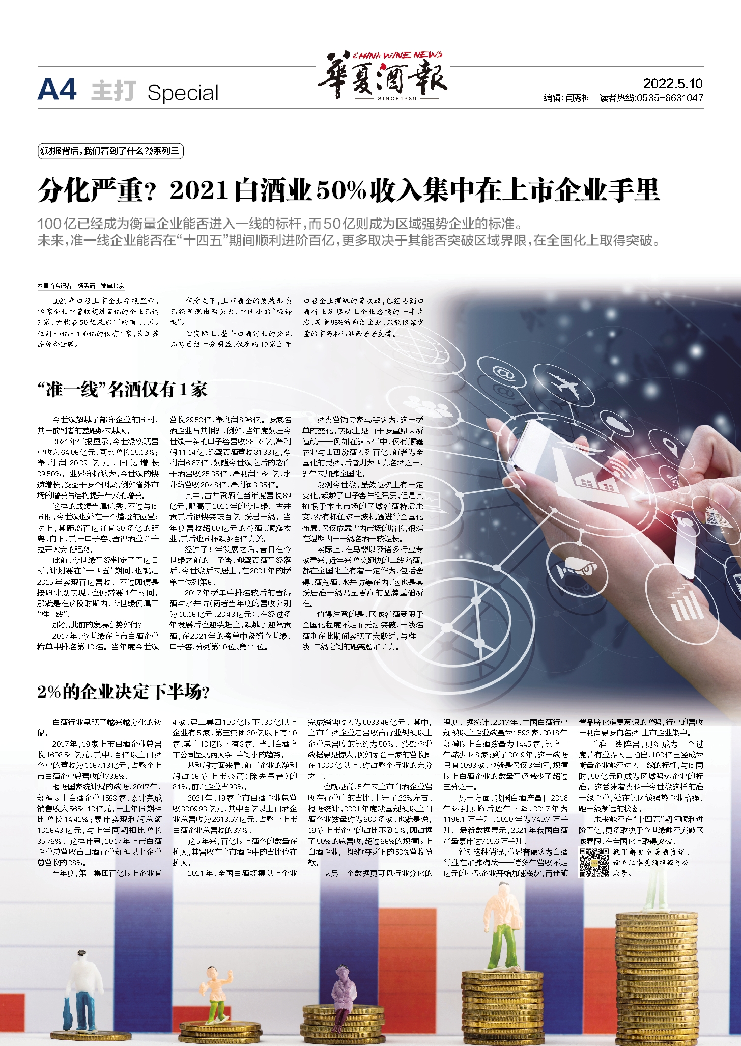 A4主打《分化嚴重?2021白酒業50%收入集中在上市企業手里》