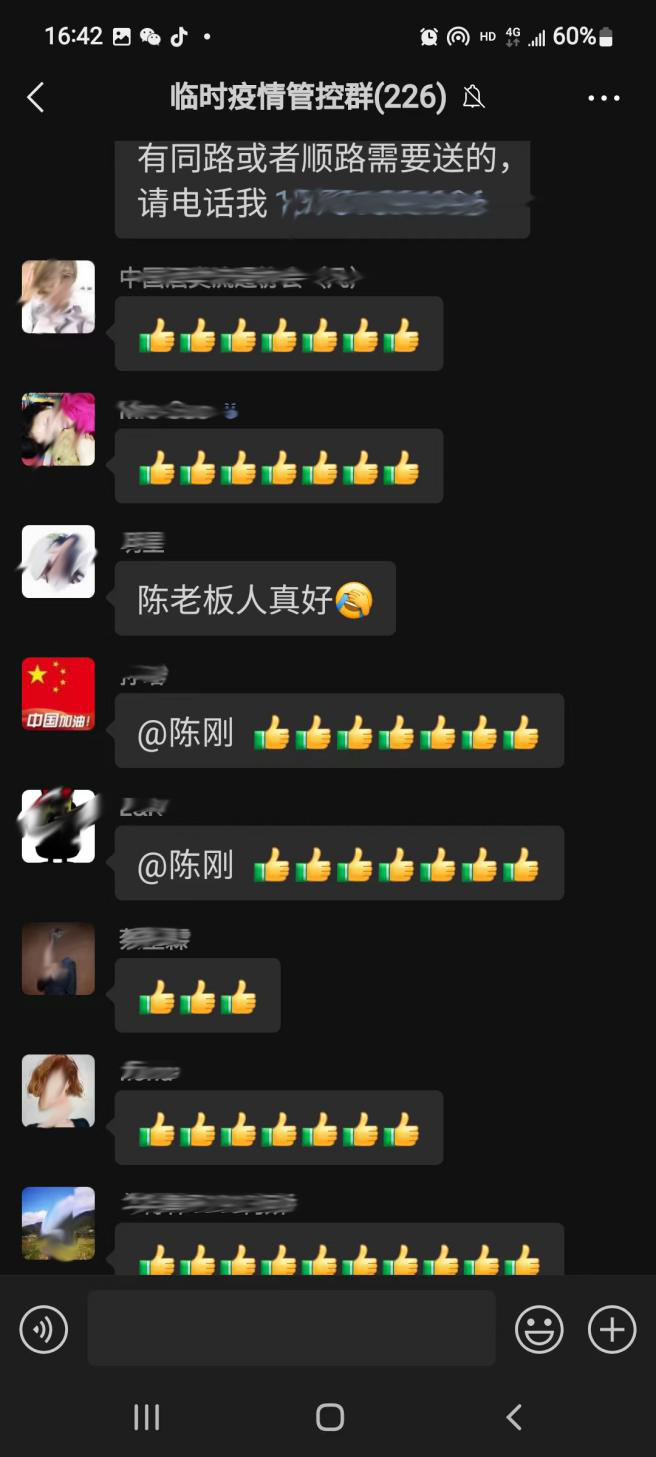 這時候有好心人開始當起了志愿者、義務兵。他不求回報義無反顧的跑了幾十公里,來回一百多公里送那些朋友回家,其中有個人在群里的話語受到了我的關注。