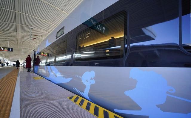 北京冬奧列車是為保障冬奧運輸而專門開行的列車,連通北京冬奧會北京、延慶、張家口三個賽區。這趟新型奧運版復興號有一個非常喜慶的名字叫做“瑞雪迎春”,遠遠望去宛若一條耀眼的冰藍色絲帶,上面點綴的冰雪粒子和一幅幅冰雪運動剪影暗示著“它的身份”。“冰雪專列”車廂內部處處冬奧元素豐盈,“冰墩墩、雪容融”小貼紙、冰雪主題郵局等驚喜不斷。