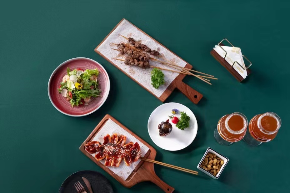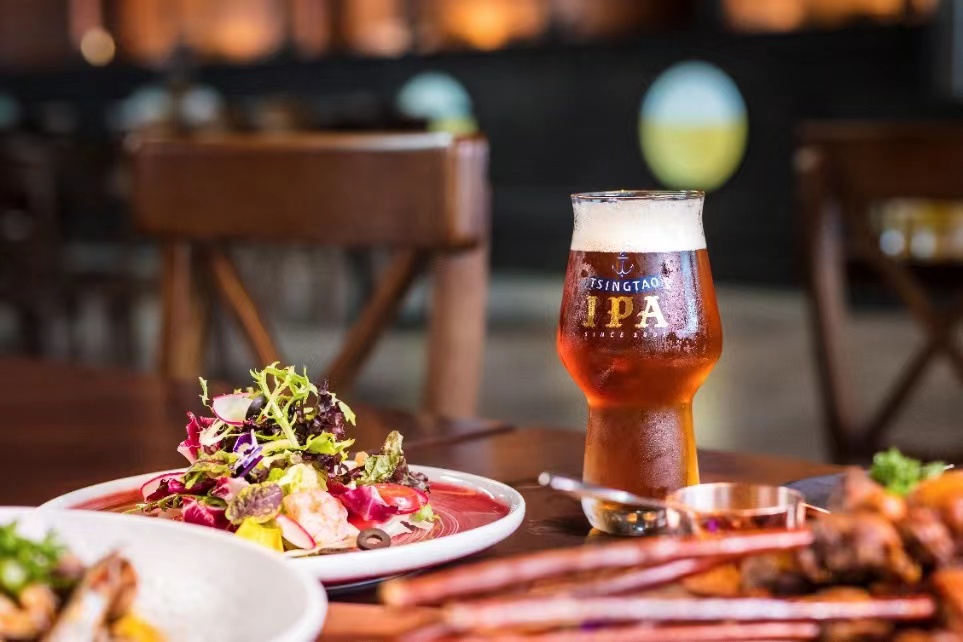 此外,青啤對(duì)品質(zhì)的追求還體現(xiàn)在酒杯里、擺盤(pán)里、刀叉里、配菜里……為了釋放啤酒最佳口感,青啤采用專(zhuān)酒專(zhuān)杯,專(zhuān)屬啤酒杯讓不同精釀的色澤、香氣、味道、口感達(dá)到最佳狀態(tài)。而根據(jù)每一款精釀啤酒的口味特點(diǎn),精準(zhǔn)搭配不同口味的文化融合菜,例如美式IPA,因其本身苦味且回水果甘,搭配咸、辣口味的菜品(肉類(lèi)、海鮮和披薩)最適宜;以苦味為主的比利時(shí)雙料,搭配甜、鮮為主的餐品(扒腸、甜點(diǎn))最適宜。