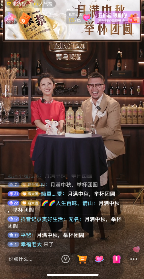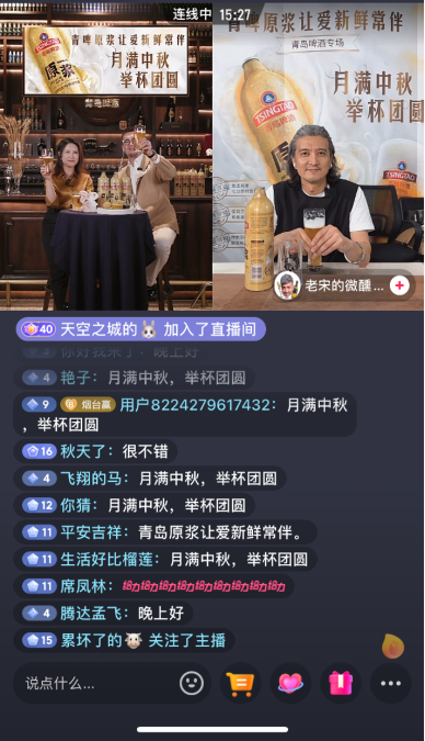 從中秋團圓到親情保鮮,再講到一杯新鮮的青啤原漿,與這杯酒背后的人文情懷,這樣的直播方式無疑讓觀眾大呼新鮮。9月8日,青島啤酒在抖音平臺“青島啤酒官方旗艦店”進行了“月滿中秋 舉杯團圓 青啤原漿讓愛新鮮常伴”專場直播火了。