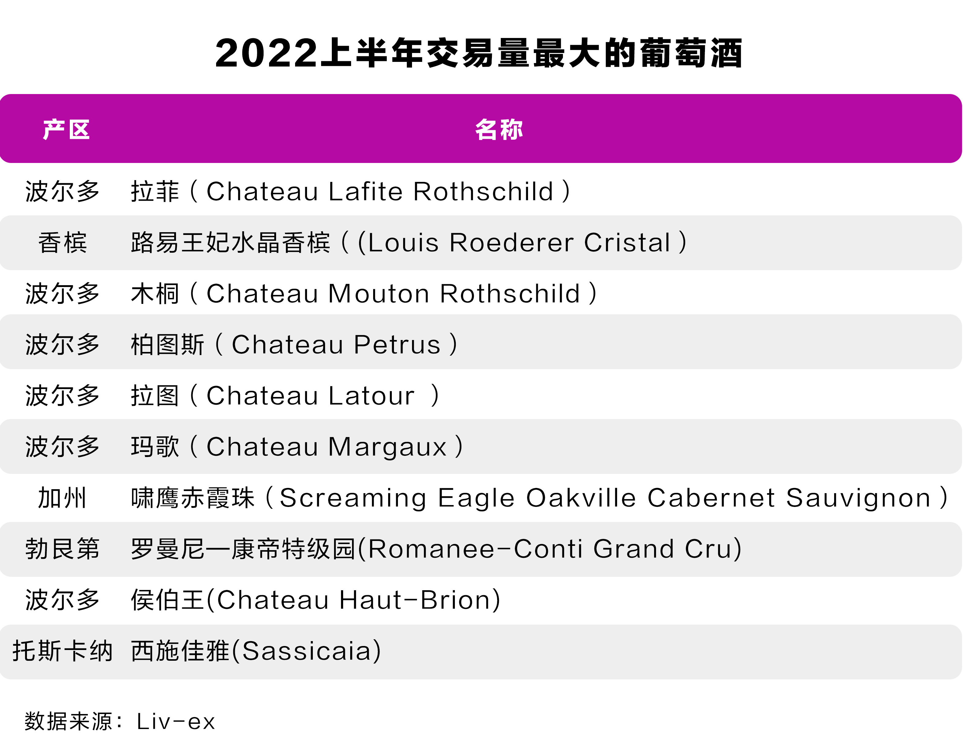 數據表明,交易量最大的葡萄酒不僅限于波爾多。來自勃艮第、加州、香檳和托斯卡納等產區的許多高端品牌也上榜。