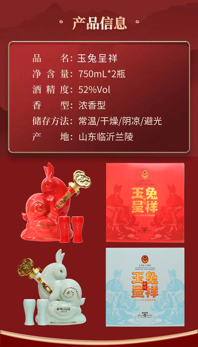 2023年癸卯兔年即將來臨,蘭陵美酒再出佳作,特別推出集生肖文化和白酒文化,兼具東方美學與收藏價值的蘭陵美酒兔年生肖酒--玉兔呈祥。