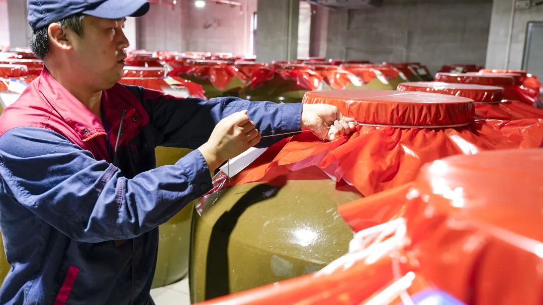 安裝壇簽封存:完成酒體感官質量測評及資料審核后,專家前往陶缸庫對考察、品鑒過的原酒進行封壇。