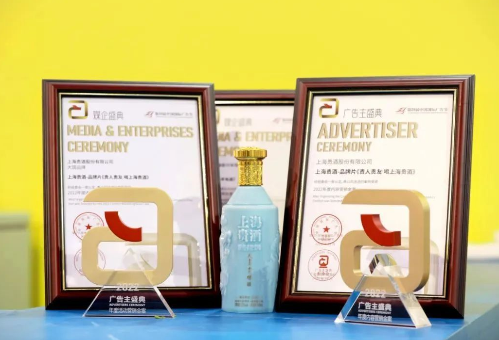 2022年以來,上海貴酒先后獲得“2022廣告主年度案例·年度內容營銷案例”、“2022媒企合作年度案例”、“2022十大高品質消費創新案例”、“金融精英鐘愛白酒品牌”、“優化生活·新銳風尚引領獎”等營銷類獎項。