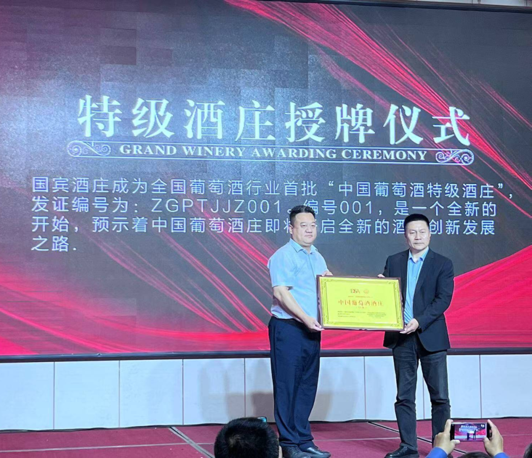 在本次美酒節開幕儀式上舉辦中國酒莊分級管理評定首批酒莊授牌儀式,盛唐·國賓酒莊代表產區成為全國葡萄酒行業首批“中國葡萄酒特級酒莊”,發證編號為:ZGPTJJZ001。編號001,是一個全新的開始,預示著中國葡萄酒莊即將開啟全新的酒莊創新發展之路。在本次活動中還舉辦了山東省葡萄研究院(國賓)葡萄與葡萄酒研發中心的授牌儀式。