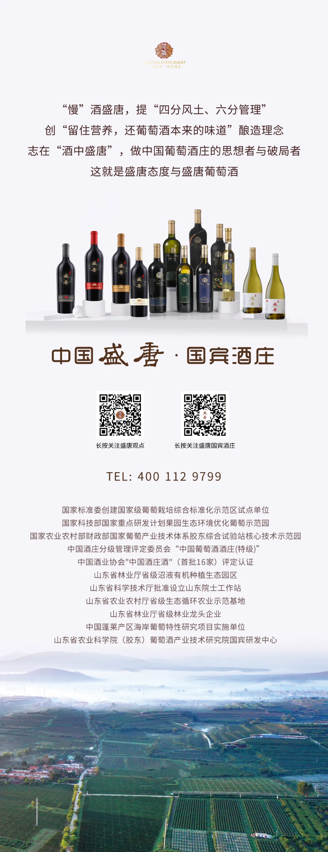 據悉,國賓酒莊是全球第一家中式唐風葡萄酒莊,位于世界七大葡萄海岸之一的蓬萊唐皇山谷,由煙臺金宇集團投資興建,以高端酒莊酒生產為核心,涵蓋優質釀酒葡萄苗木種植、葡萄酒文化、世界葡萄酒文化交流、葡萄酒主題休閑旅游等產業集群。