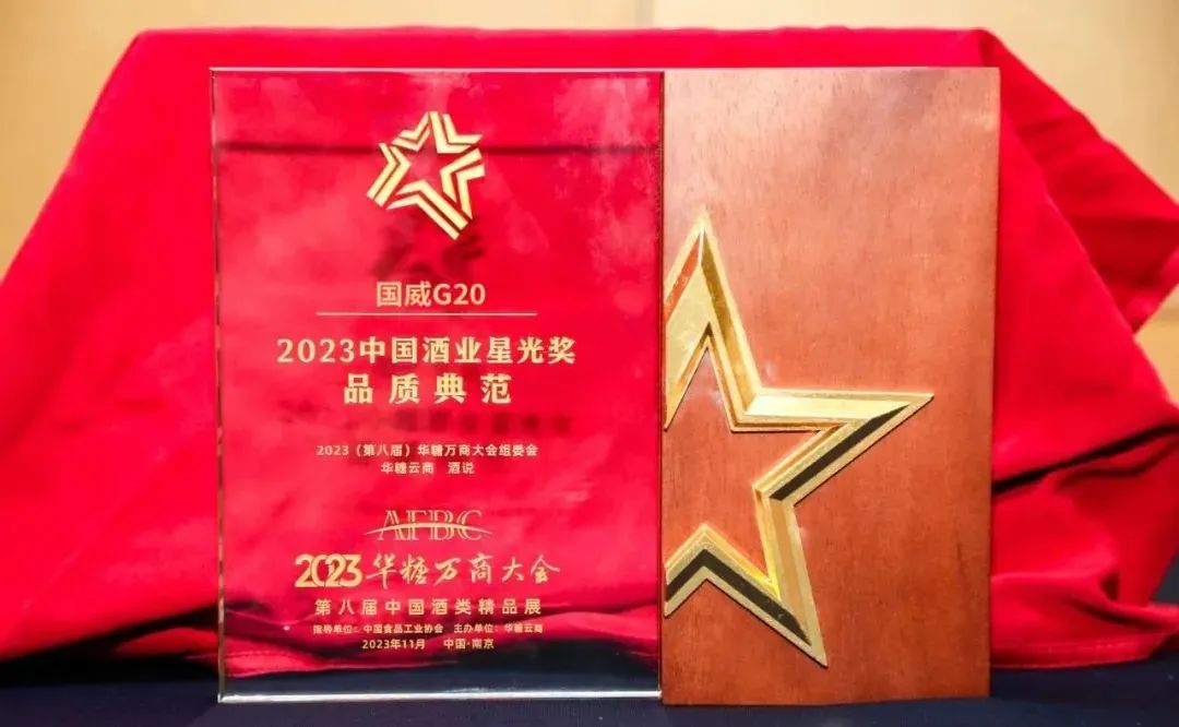 11月28日,在“新名酒品牌價值論壇暨2023中國酒業星光獎頒獎盛典”上,國威G20以高品質好口碑,斬獲“2023中國酒業星光獎·品質典范”獎。