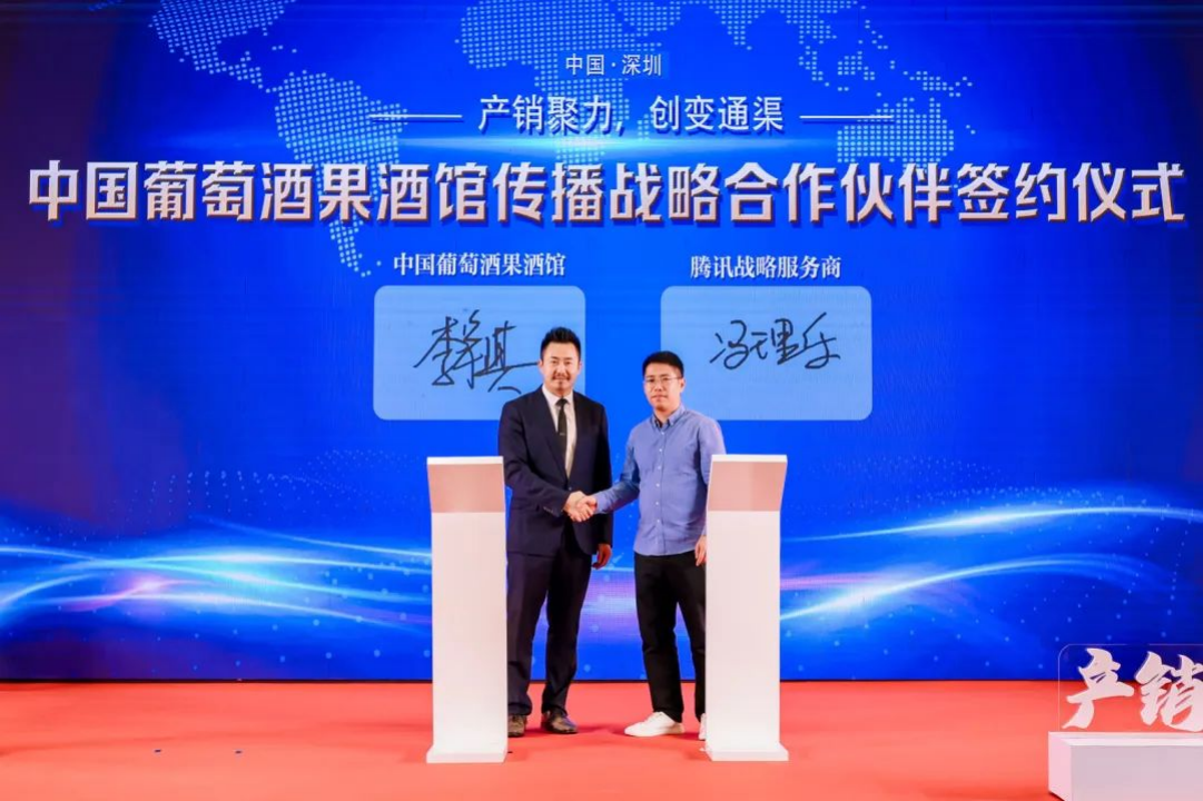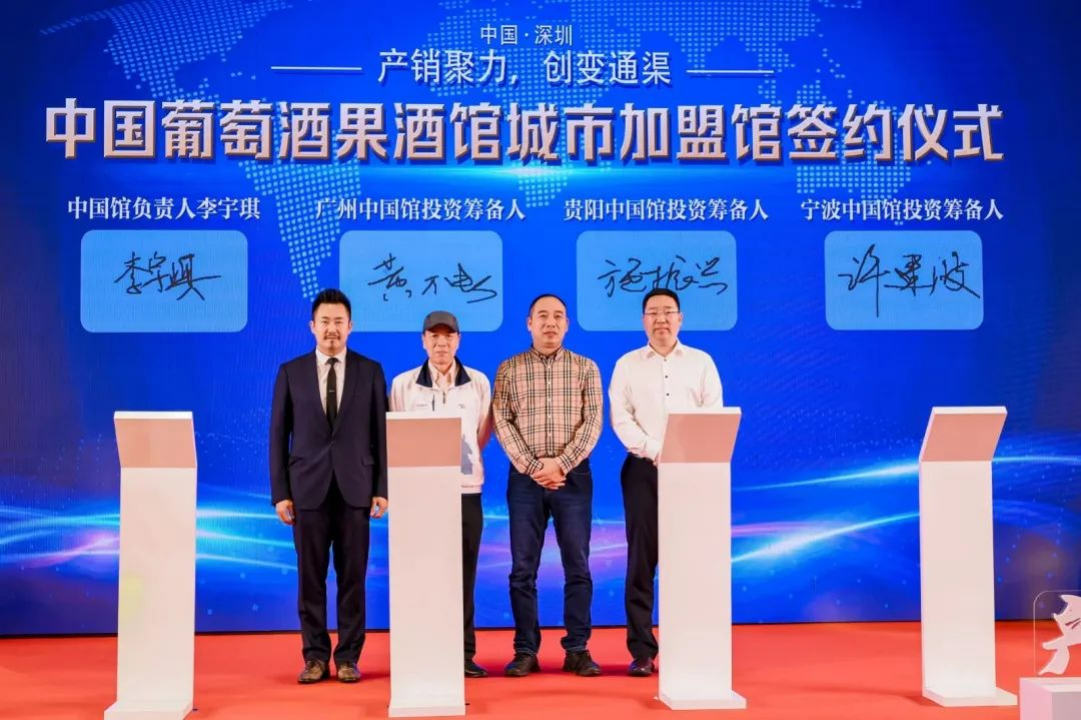 首先,中國葡萄酒果酒館城市加盟館簽約儀式舉行,中國葡萄酒果酒館中國館負責人李宇琪攜手貴陽中國館投資籌備人施振興、廣州中國館投資籌備人黃萬虹、寧波中國館投資籌備人許建波共同簽署了合作協議。隨后,李宇琪負責人再次與騰訊戰略服務商馮理樂簽署了中國葡萄酒果酒館傳播戰略合作伙伴協議。