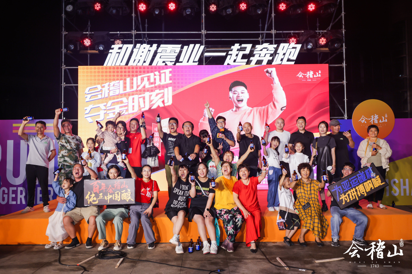 在亞運會男子100米決賽前一個月,會稽山開展多場助力謝震業亞運奪冠活動。線下快閃行動,在杭州、紹興兩城,提供一輛充滿亞運元素的移動酒車,設置多個亞運巨型拍照打卡區域。在決賽當天,更是在兩地提供直播觀賽空間。線上,直播連線,與線上線下十萬人共同見證謝震業奪冠時刻。在“會稽山俱樂部”小程序,當晚更是有上萬消費者開獎,獲得助力謝震業的慶功酒。