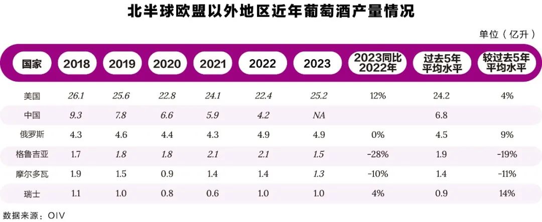 從東歐國家來看,俄羅斯的葡萄酒產量估計為4.9億升,與2022年的產量一致,比過去5年的平均水平高9%。