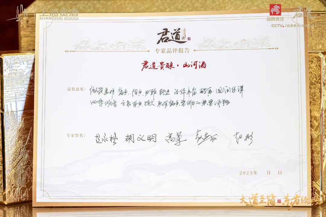 這一次,君道貴釀的高品質(zhì)也收獲了肯定。專家組通過觀色、聞香、品味,結(jié)合市場趨勢與消費(fèi)者習(xí)慣,給出君道貴釀·山河酒和君道貴釀·典藏酒品評意見。