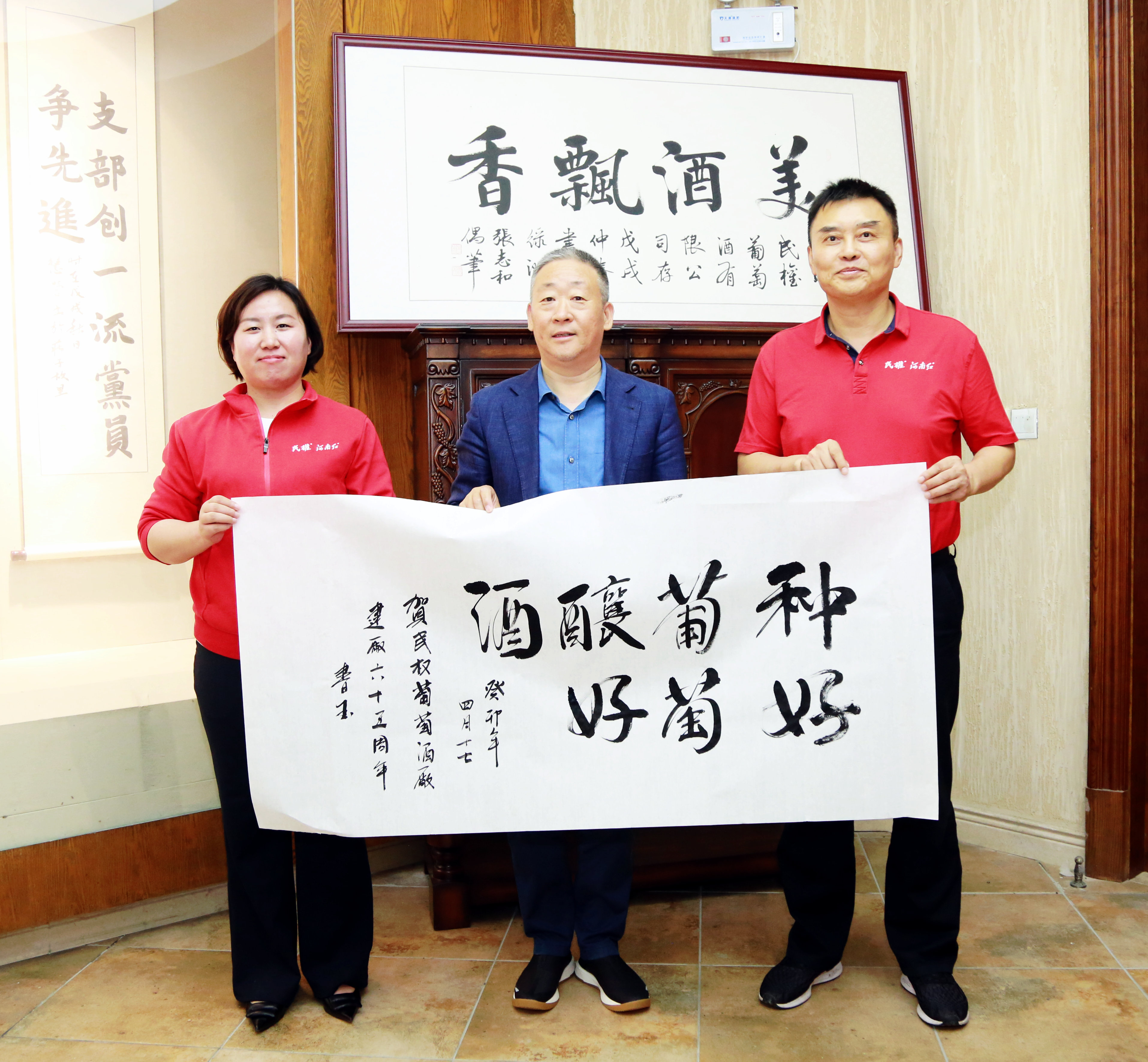 宋書玉理事長還親自為民權葡萄酒寄語“種好葡萄釀好酒”,祝賀民權葡萄酒廠建廠65周年。