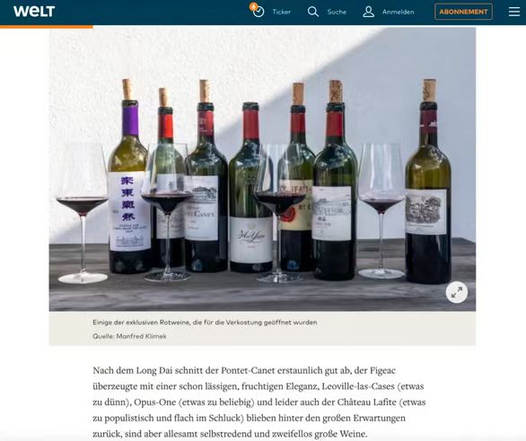 ▲德國《世界報》發表的題為《中國葡萄酒會很快超越法國葡萄酒嗎?》文章