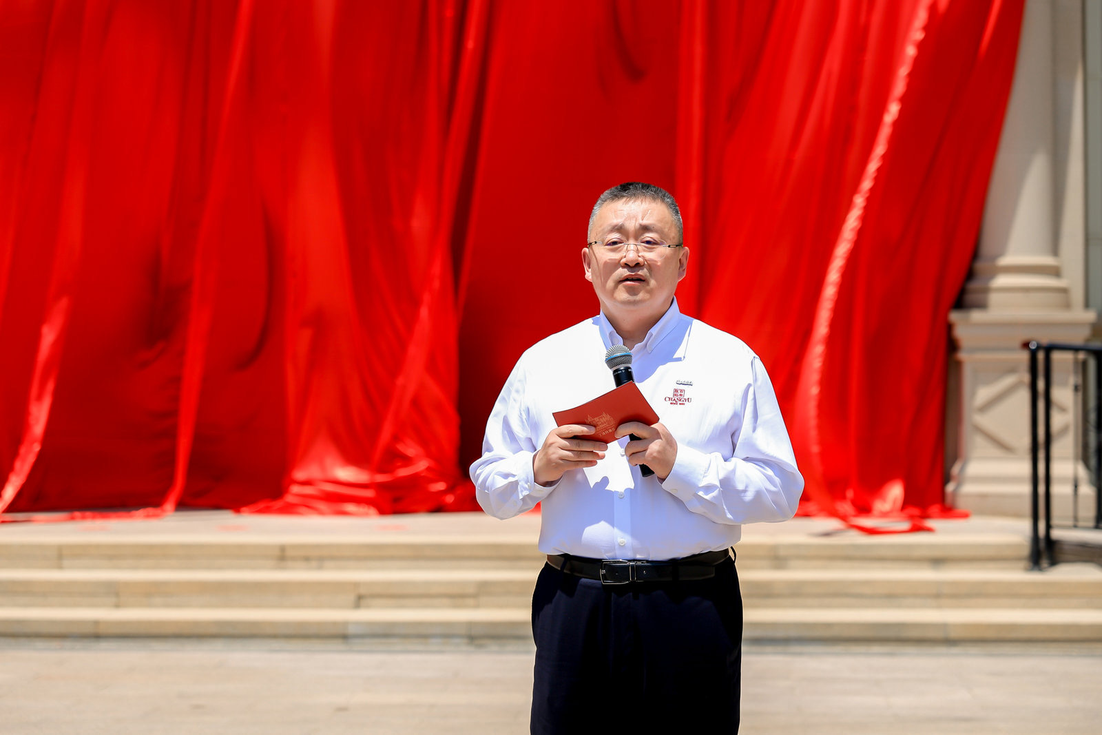 煙臺(tái)市政協(xié)主席、煙臺(tái)葡萄酒產(chǎn)業(yè)鏈鏈長(zhǎng)于永信先生(左)與中國(guó)食品科學(xué)技術(shù)學(xué)會(huì)葡萄酒分會(huì)理事長(zhǎng)李華教授(右)共同為中國(guó)葡萄酒風(fēng)味與健康研究院科創(chuàng)平臺(tái)揭牌