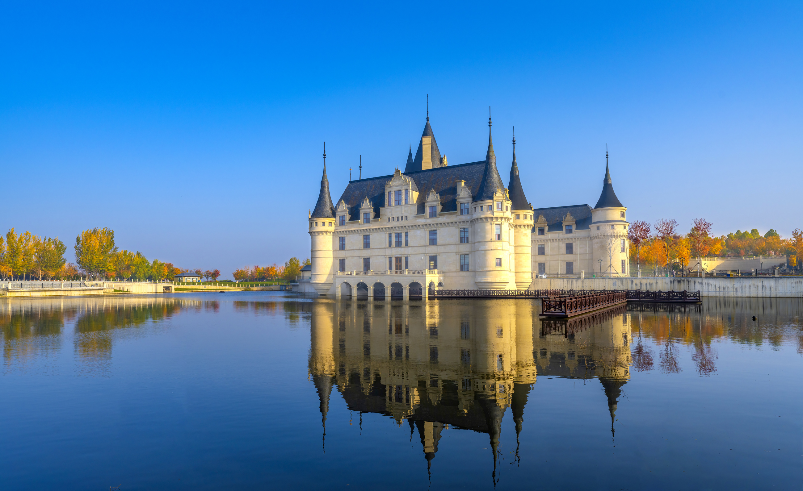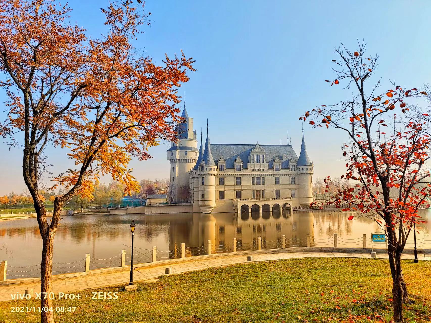 粼粼湖光映照著高聳尖頂,與遠(yuǎn)處的葡萄園相映成畫。