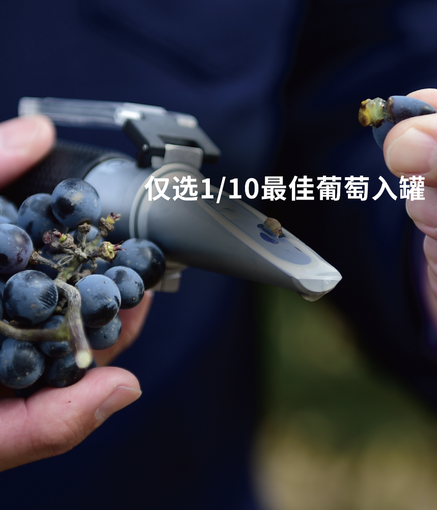 葡萄歷經(jīng)千挑萬(wàn)選,正常年份也僅有1/10的最佳葡萄,能被選中釀造收藏級(jí)酒莊酒。
