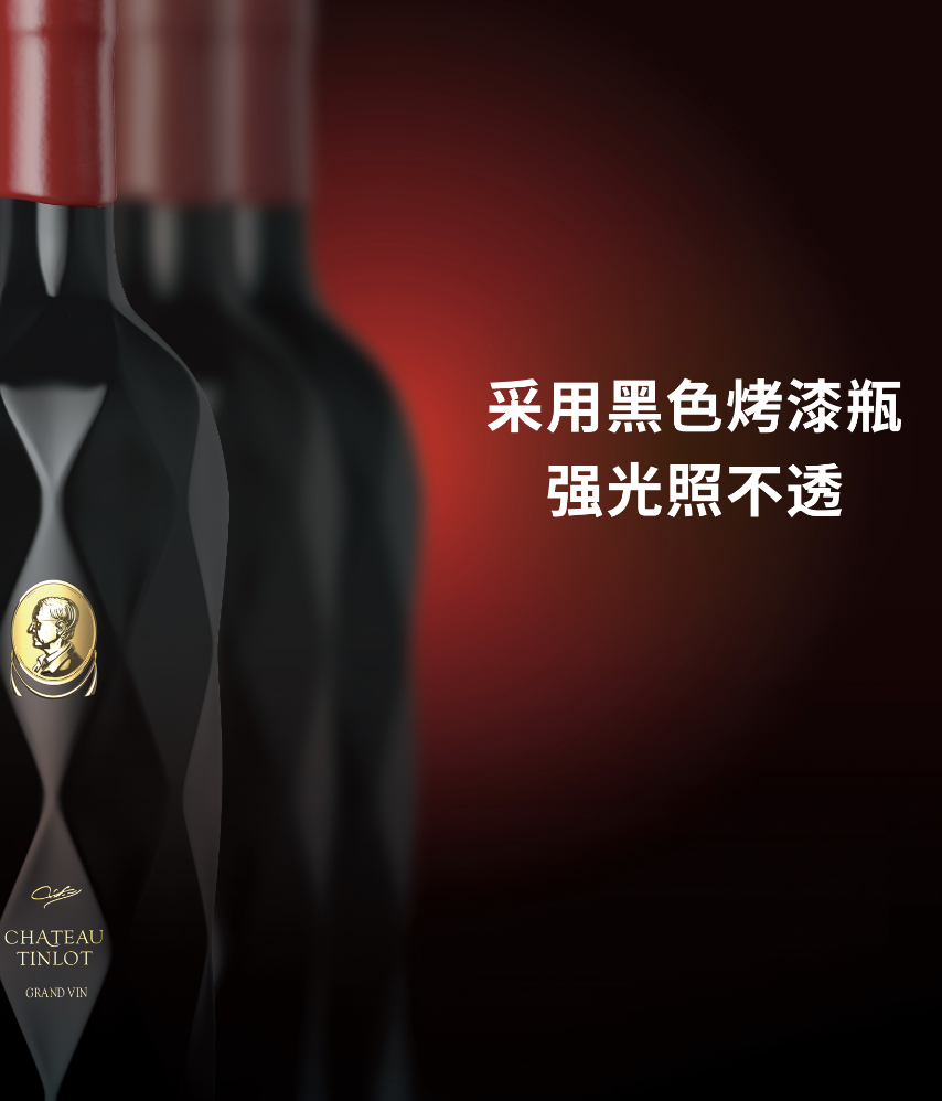 收藏級(jí)葡萄酒的酒瓶也極為講究。丁洛特采用的黑色烤漆瓶,用強(qiáng)光手電也照不透,避免了光對(duì)酒體的影響。