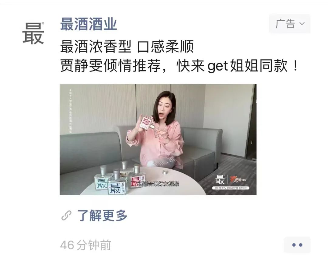 營銷策略上,想年輕人之所想,根據年輕市場需求,不斷創新和創造對多元消費場景的打造,在精準人群、細分賽道等方面持續發力;消費場景上,通過多種繽紛跨圈方式,讓消費者從生活場景里面找到最?酒,將年輕消費者喜歡的產品或者消費場景和產品產生連接。從最?酒階段性戰報來看,僅通過合作《乘風2023》和攜手賈靜雯兩點,品牌便實現了億量級曝光。