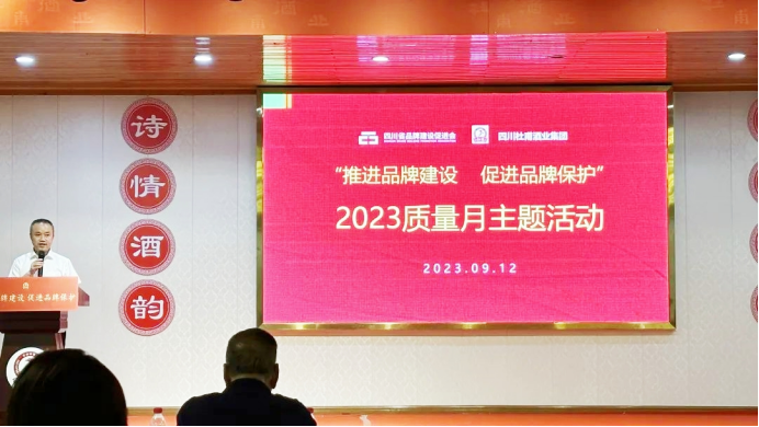 9月12日,四川省品牌建設促進會與四川杜甫酒業集團股份有限公司(以下簡稱杜甫酒業)在綿竹共同舉辦“推進品牌建設 促進品牌保護”2023年“質量月”主題活動。原四川省質量技術監督局黨組成員、紀檢組組長、監察專員羅召貴,四川省品牌建設促進會會長孫冰,綿竹市市場監管局副局長馮小明,四川杜甫酒業集團股份有限公司董事長彭作權,質量品牌專家,促進會部分會員單位和受邀企業負責人共50余人參加活動。