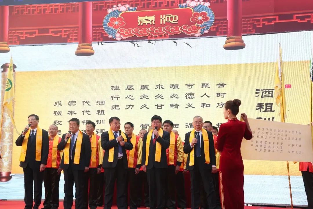 集團董事長胡福東登臺頌讀《祭酒神文》,總經理王建偉帶領秦池員工行祭酒神禮、頌讀《酒祖訓詞》,生動展現了秦池酒業敬畏自然、敬畏原糧、敬畏先賢的價值理念,以及對工藝、品質、傳承、信念的執著堅守。