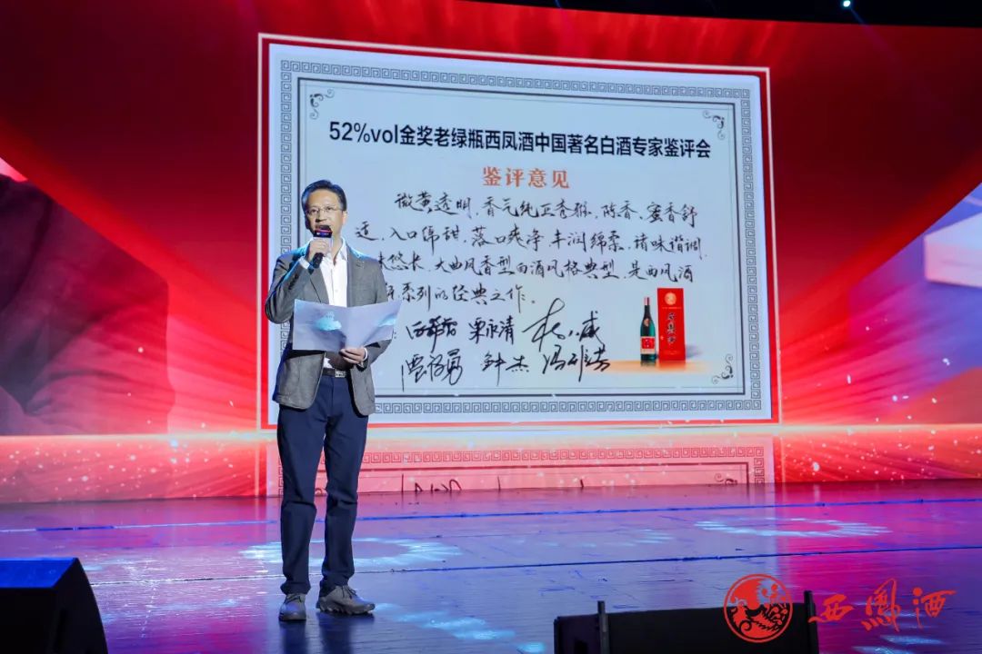 當(dāng)天的大會(huì)上,西鳳酒推出面向300元價(jià)格段的新品“金獎(jiǎng)老綠瓶西鳳酒”。著名白酒專家、四川源坤教育科技創(chuàng)始人、國(guó)家市場(chǎng)監(jiān)管重點(diǎn)實(shí)驗(yàn)室學(xué)術(shù)委員鐘杰宣讀了專家團(tuán)鑒評(píng)結(jié)果——“該產(chǎn)品香氣純正秀雅,陳香、蜜香舒適,入口綿甜,落口爽凈,豐潤(rùn)綿柔,回味悠長(zhǎng)”。
