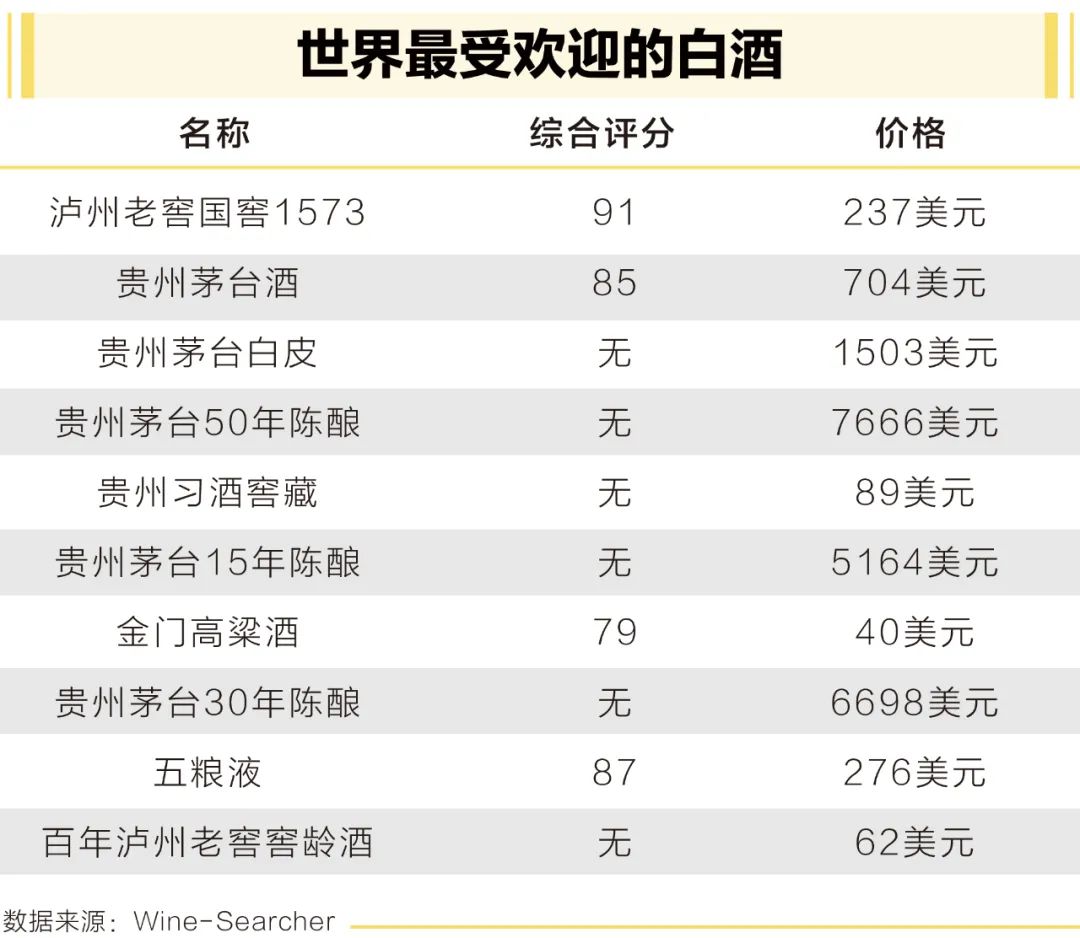 排名第一的是瀘州老窖國窖1573。根據(jù)Wine-Searcher的統(tǒng)計,目前,它在世界最受歡迎的酒精飲料中排名第65位。
