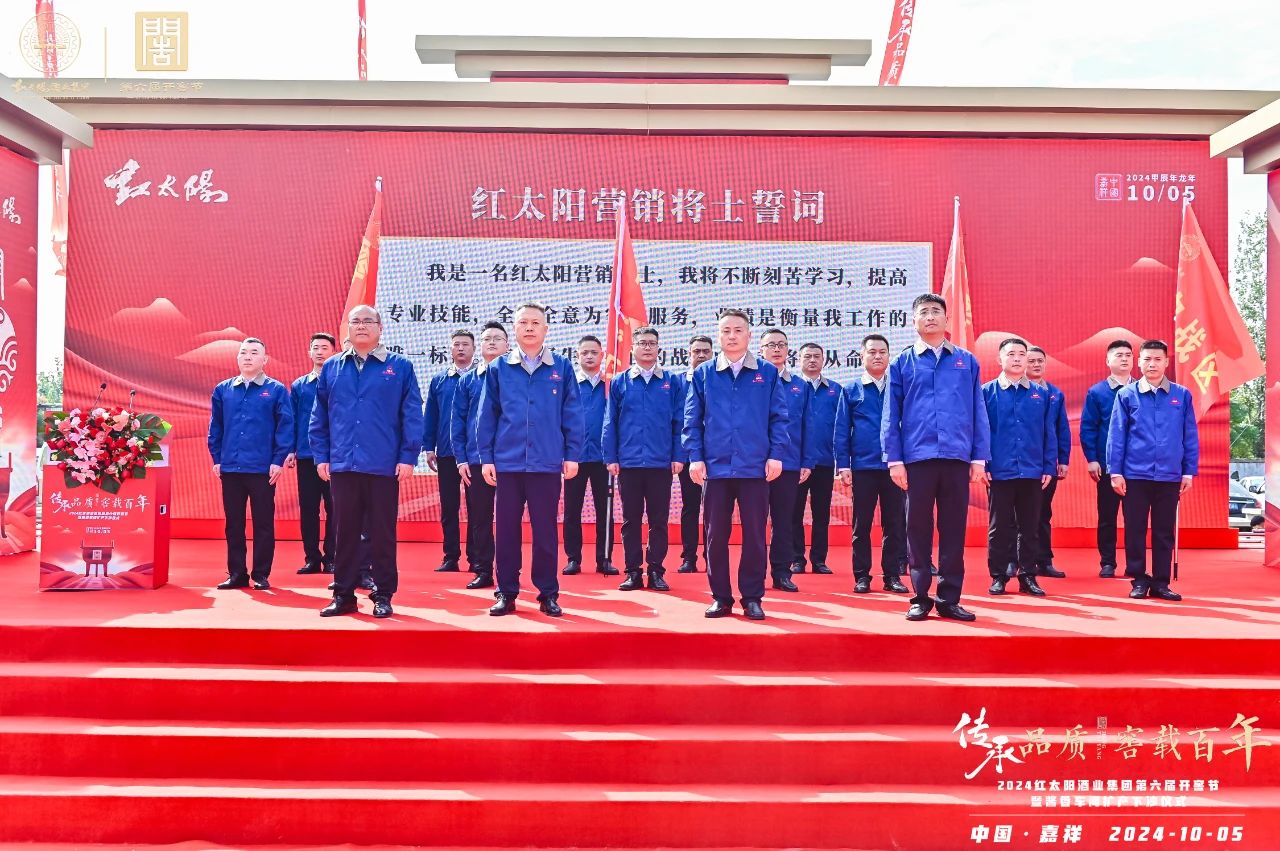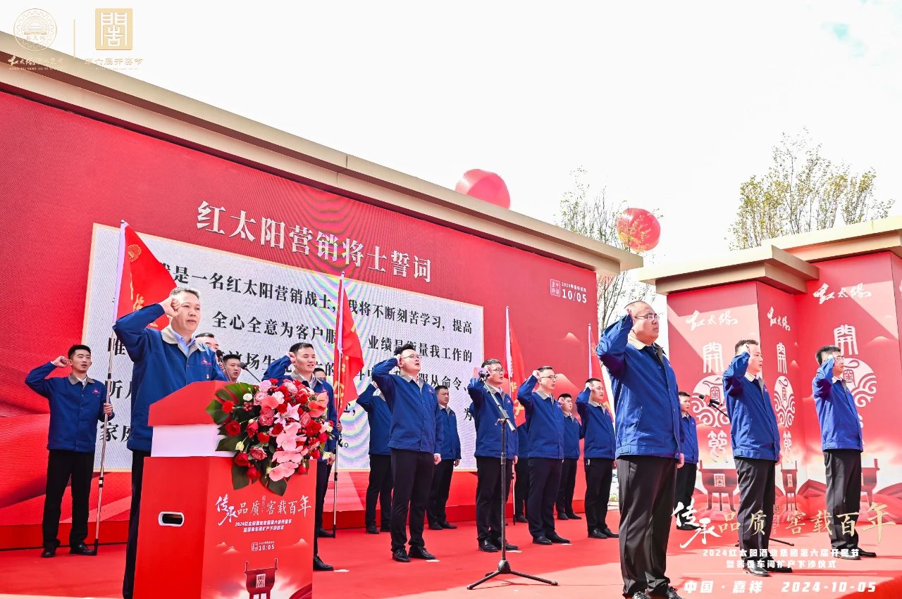 來自中國酒業協會、天津科技大學、中國食品發酵工業研究院、山東省白酒協會、山東省糖酒副食品協會、山東省食品工業協會和嘉祥縣有關部門的領導,國家級釀酒大師、白酒評委,以及紅太陽酒業集團的經銷商、核心客戶代表等800多位嘉賓出席了本屆盛典活動,共同領略了一場與眾不同的品質+文化的美酒之旅。紅太陽酒業集團總經理任志剛在開幕致辭上介紹了開窖節舉辦的價值和意義,連續舉辦六屆的開窖節,已經成為紅太陽酒業的傳統節日之一,既讓經銷商、終端店等廣大合作伙伴,現場見證了企業對釀酒的誠心、真心和用心,也用最直接、最真實的方式,向消費者傳達出堅持生態釀造、傳統釀造的理念和初心。紅太陽酒業將一如既往的堅持品質主義、長期主義,把釀好酒作為最核心、最重要的事業,繼續為消費者奉獻品質領先、品牌賦能的好產品,為企業的高質量發展不斷增加新動能。嘉祥縣政府副縣長王旭對紅太陽開窖節的舉辦給予了高度評價,他表示,紅太陽酒業以穩健為企業戰略,以品質為發展基石,以文化為品牌支撐,不斷取得新業績、新成就,不僅成為嘉祥的一張亮麗名片,成為嘉祥人民引以為傲的家鄉酒,而且還為地方經濟發展和社會公益事業做出了重要貢獻。辦好開窖節,打好特色牌,紅太陽酒業的未來,一定會更加美好更加光明。山東省白酒協會會長姜祖模在講話中提到,紅太陽酒業是山東白酒的骨干企業,有著雄厚的釀造實力、領先的科研水平和深厚的文化底蘊,尤其是近年來,在市場上屢屢取得新突破,展現出逆勢而上的強大勢能。第六屆開窖節和下沙儀式的隆重舉行,既是對歷史的尊重,也是對文化的傳承,更是對品質的堅持。讓越來越多的消費者深切感受到頭排酒獨特價值和魅力的同時,亦成為紅太陽酒業展現自身實力的重要窗口。中國白酒,是一個講歷史、講底蘊的產業,更是一個講堅守、講傳承的行業。沒有堅守,會失去根基;沒有傳承,就沒有未來。本屆開窖節上,紅太陽酒業以“傳承”為主題,精心拍攝制作的紀錄片,在活動現場進行了首映。紀錄片從企業、釀造、營銷三個維度,講述了紅太陽酒業的傳承故事。匠心之道,是“擇一事、終一生”,源于矢志,貴在傳承。作為中國白酒行業為數不多三代傳承的釀酒世家,紅太陽酒業第一代創始人董事長任春玉、第二代傳承人總經理任志剛和第三代守護人任俊宇,三代做酒,薪火相傳。紀錄片的開篇部分,講述了他們祖孫三代,本著“守一個行業,做百年企業”的初心,用一生熱愛、三代同心的蓬勃力量,以匠心傳承、精神傳承、使命傳承的有序接力,共同托起了中國酒業的紅太陽。記錄片還從釀造傳承和營銷傳承的角度,精彩呈現了一代代紅太陽釀酒人如何堅守匠心、堅守品質釀好酒,以及三代營銷人,在不同的年代如何奮進拼搏的感人故事。既清晰展現出紅太陽酒業的傳承發展史,也彰顯出企業在有序的傳承中,不斷增強的向心力和凝聚力。傳承是一種堅守,也是一種力量,傳的是歷史,承的是未來。紀錄片以獨特的視角、質樸的語言、寫實的畫面和生動的故事,打動了現場每一位嘉賓,不僅以“傳世代之志、承時代使命”的內核表達,讓延續不斷的初心使命、傳統技藝、營銷信念活躍于熒屏,也在點滴之中、于細微之處,展現出紅太陽酒業精神之光的閃耀不息。紀錄片首映結束后,現場還舉行了營銷傳承儀式。各營銷戰區的精英代表們共同登臺宣誓,一聲聲誓詞猶如氣勢如虹、全力以赴的沖鋒號,不僅彰顯出營銷團隊統一思想、統一目標、統一行動共同奮進的使命擔當,更代表著充滿激情和干勁的紅太陽全體營銷人員,握好接力棒、當好傳承人的自信和決心。傳承儀式完成后,伴隨著激昂的鼓樂聲,紅太陽頭排酒開窖儀式正式啟動。主禮官、儀仗隊身著冕服,主祭、陪祭依次莊重登場。主禮官以雄厚洪亮的聲音恭誦開窖文:人間共生,天地同釀;窖開頭排,舉世共享;恭迎酒祖,承傳不忘;凈手靜心,大地呈祥;誦讀祭文,永葆安康;祭祀禮成,授旗開窖。一場古樸正統的開窖祭祀典禮徐徐拉開帷幕。現場古樂悠揚,莊嚴隆重,嘉賓們仿佛穿過歷史的長河,身臨其境于古代祭祀的儀式場景。凈手、凈面、上香;迎圖騰、呈祭品,敬美酒。三杯酒分別敬天、敬地、敬酒神。第一碗,敬天,天有時、律可循、萬物生,尚德守法愈昌盛;第二碗,敬地,地有氣、糧黍盛、麥曲成,五谷豐登酒更豐;第三碗,敬圖騰美酒飄香、炎黃子孫、醉千杯。祭祀典禮圓滿禮成之后,任春玉董事長向釀酒師傅們授予開窖令旗。伴隨著“開窖嘍,開窖嘍,開窖嘍”三聲高呼,釀酒師們邁著整齊的步伐前往車間開窖,臉上寫滿了歡欣與喜悅,呼聲中更是透露出那份釀造頭排酒的期盼之心和興奮之情。“吉時到,起窖”,隨著號令聲響起,“頭排酒”開釀典禮正式開始。六位師傅揭開窖池表面的封閉層,開始下第一锨,執禮合頌“白露豐潤,紫氣東來”;二锨起,執禮合頌“窖開頭排,綿柔傳世”;三锨起,執禮合頌“天地同釀,藝人合一”。 天地順,出酒順,一帆風順,開窖禮成。