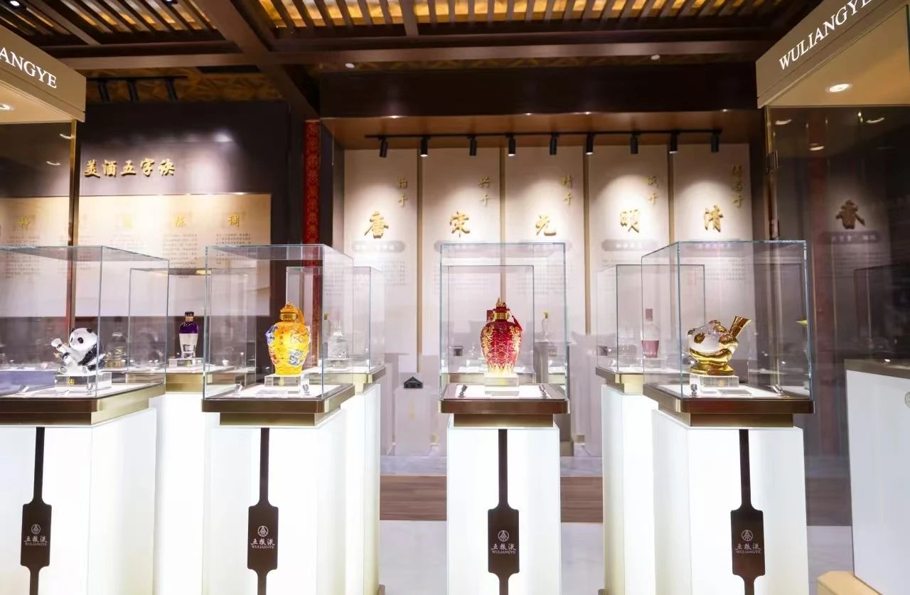 展廳內,從五糧液進博會紀念酒到五糧液金熊貓紀念酒,從501五糧液到五糧液龍年生肖酒,從經典五糧液系列到濃香系列酒和果露酒各具特色,無聲展示著五糧液滿足消費者多元需求、為消費者創造美好的不變初心。廳內的圖案文字、視頻資料等將五糧液八大古傳酒坊微縮景觀到唐宋元明清傳承演變娓娓道來,訴說著品牌深厚的傳承底蘊和文化魅力;從“種釀選陳調”美酒五字訣,到觀色、聞香、品味、悟格的“品酒四步法”,再到最新的風味與微生物研究成果,無不展現著世界名酒五糧液的品質堅守與技術創新。展廳內還特別規劃了一處品鑒區域,引領每一位來訪者共同品鑒五糧液,全方位體驗其獨特的魅力。