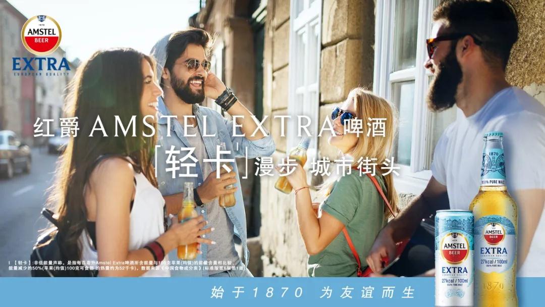 Ⅰ【輕卡】:非低能量聲稱,是指每百毫升Amstel Extra啤酒所含能量與10克蘋果(均值)的能量含量相比較,能量減少約50%(蘋果(均值)100克可食部的熱量約為52千卡),數據來源《中國食物成分表》(標準版第6版第1冊)