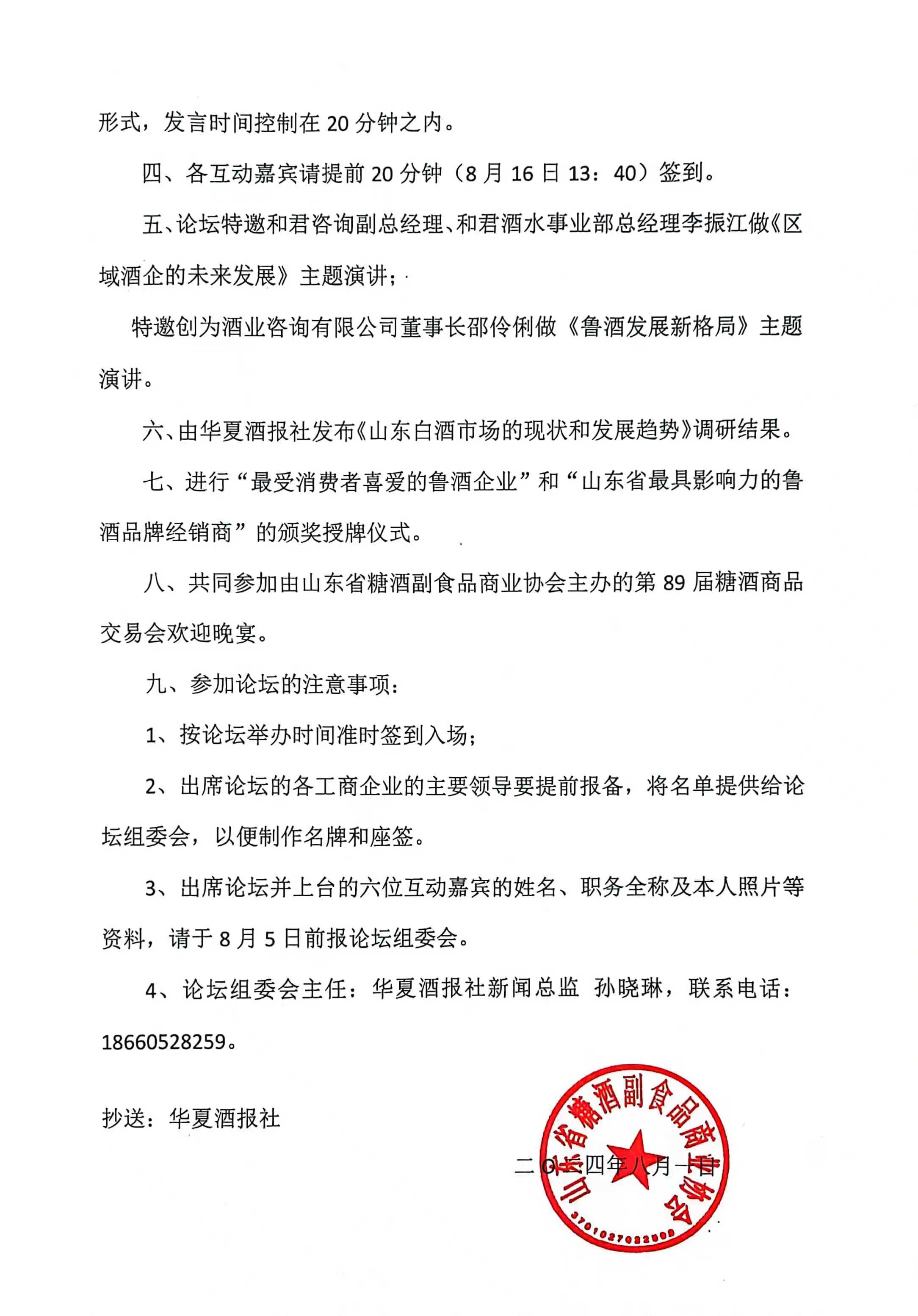 2024年(第89屆)山東省糖酒商品交易會主題論壇將于8月16日下午在濰坊藍海大飯店正式開壇。該論壇將以“革故鼎新,勵精圖治,共譜魯酒發展新篇”為主題,共話魯酒發展,歡迎社會各界人士光臨指導。相關內容如下: