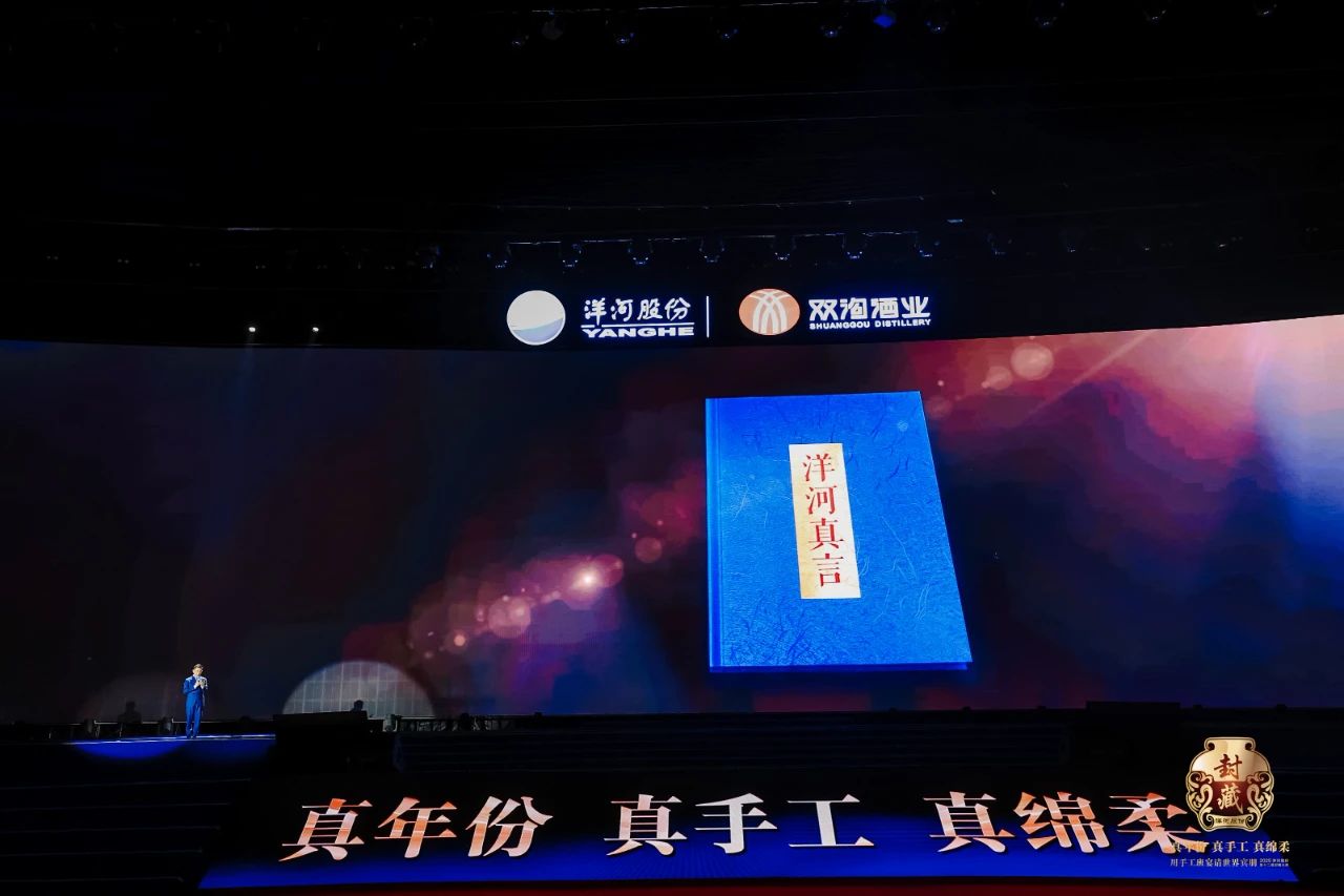 大典的節目安排獨具匠心,通過一系列沉浸式舞臺電影、喜劇表演、AI對話等創意文化節目,全方位展示了洋河股份對白酒文化的理解、傳承、創新以及對高品質的執著追求。節目單被巧妙設計成了一本書的意象——《洋河“真”言》,由文化學者、著名主持人趙普擔任領讀人,以“真心話”為引,串聯起整個大典的十個節目章節。