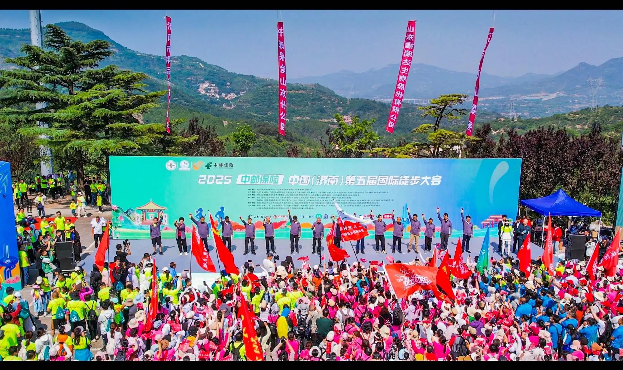 5月24日上午,“2025中國(濟南)第五屆國際徒步大會”于濟南市南山區紅葉谷景區正式拉開帷幕。山東省政協原副主席喬延春,山東省委原副秘書長、省精品旅游促進會會長杜文彬,國際徒步聯盟中國代表處副主席趙雅君、秘書長楊京,濟南市南山區管理委員會社會事務管理局黨委書記、局長孟兆軍,副局長張吉良等領導嘉賓出席,共同為本次徒步大會發令起跑。