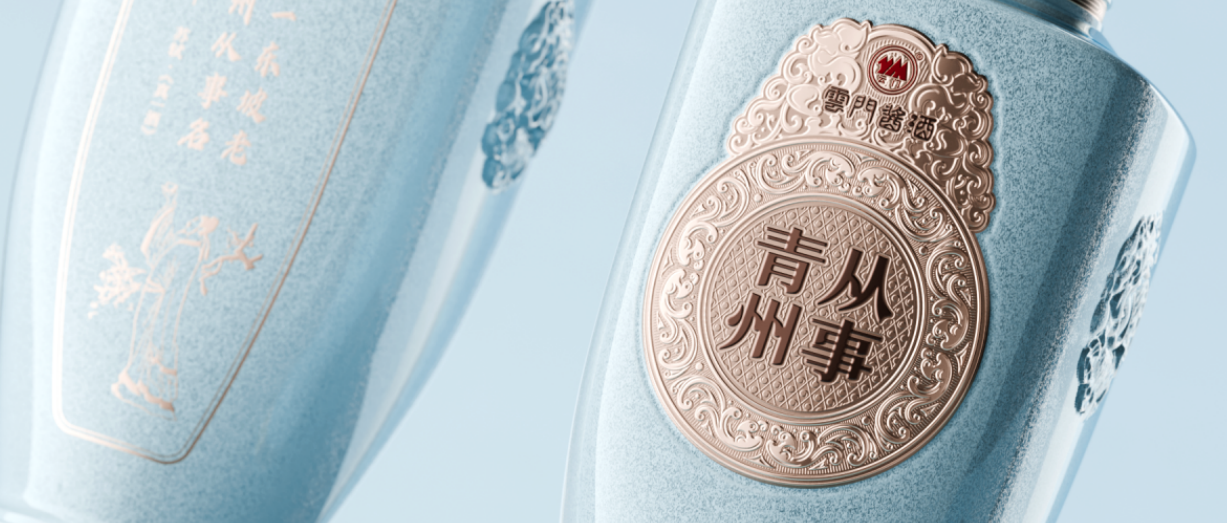 從產品設計上來看,“青州從事”系列醬酒整體以“青”色為主色調,天青色、石青色、天水青等色彩的運用,既呼應了“青州”之名,又象征著釀造環境的“青山綠水”,充分體現了高雅、唯美的東方韻味,在造型細節上,透露出中華文化的深厚底蘊。