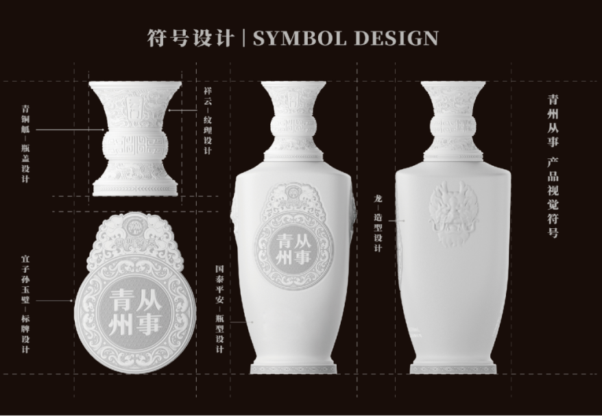 標牌設計以青州博物館、東漢宜子孫玉璧為藍本,與青州從事、云門醬酒、龍紋吉祥紋等元素融合,玉本身所代表君子之品德,與酒文化的禮儀、祝福等相得益彰,進一步豐富了產品的文化層次。