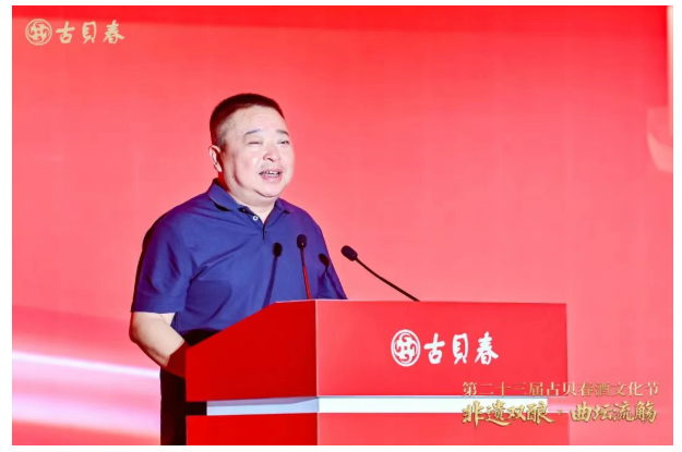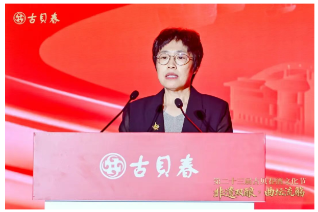 古貝春集團有限公司黨委書記、董事長徐秀菊首先致辭。她回顧了古貝春扎根運河文化、堅守百年匠心的企業發展歷程,強調在“守正創新”理念引領下,企業不僅以“雙輪固態發酵”等傳統技藝筑牢品質根基,還積極與現代科技融合,實現高質量發展。2024年集團銷售收入再創歷史新高,品牌價值達223.77億元,逆勢展現出強勁韌性與增長動能。