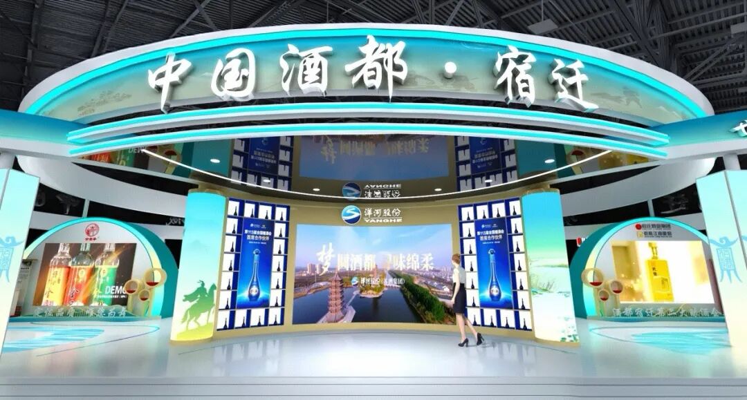 “水潤之城”打造了沉浸式空間的文化與品質訴說。本次宿遷展區的設計別具匠心,以“水潤之城”為主題的沉浸式空間,將產區的自然稟賦、歷史文脈與產業特質融為一體。展區采用環形流線設計,巧妙串聯起“項王故里”的歷史底蘊與“綿柔型白酒發展引領區”的產業定位。設計元素中深度融入了宿遷“三河兩湖一濕地”的獨特水域格局,通過波浪形結構等視覺語言,直觀而藝術地詮釋了“水釀綿柔”的產區密碼。