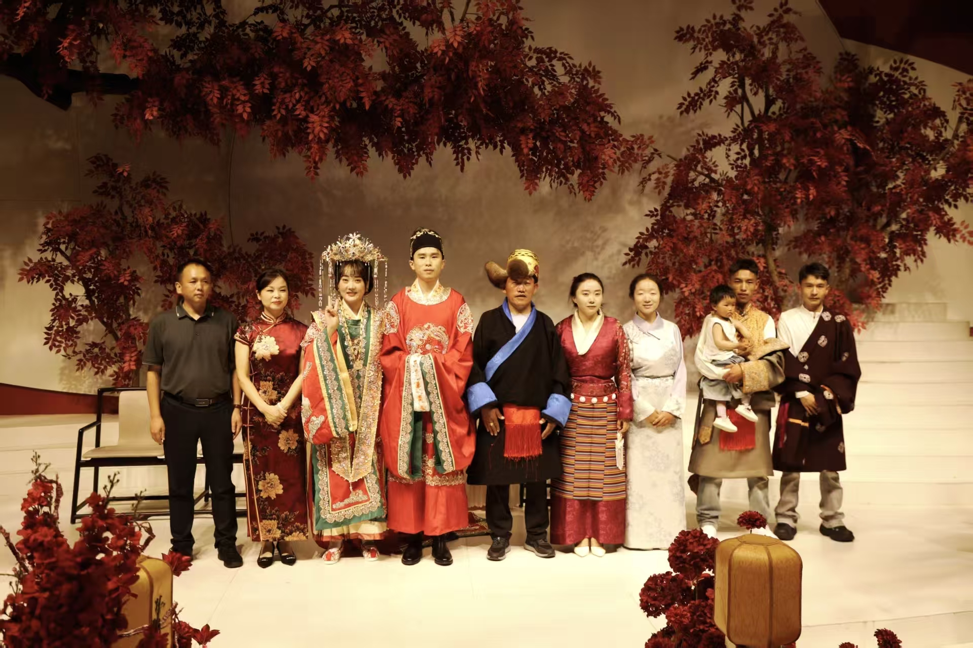 藏漢夫妻向新人送祝福