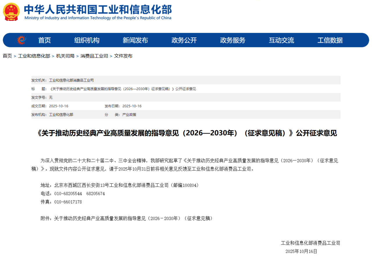 相關信息顯示,近日,工信部起草了《關于推動歷史經典產業高質量發展的指導意見(2026—2030年)(征求意見稿)》,這份指導意見,公開申明“推動絲綢、茶葉、瓷器、釀酒、中藥、文房四寶等文化底蘊深厚的中華傳統特色產業發展”。