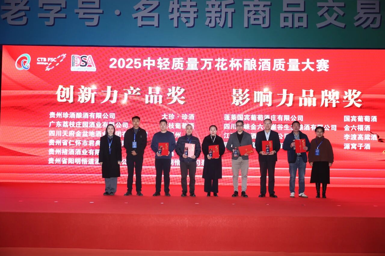 2025年11月20日,由中國輕工業(yè)聯(lián)合會主辦,大連市工業(yè)和信息化局支持,中國輕工業(yè)聯(lián)合會辦公室、大連市輕工業(yè)聯(lián)合會等承辦的第十六屆中國(大連)輕工商品博覽會——中國釀酒產業(yè)鏈協(xié)同創(chuàng)新發(fā)展論壇暨 2025中輕萬花杯釀酒質量大賽頒獎禮隆重舉行。在此活動中,盛唐·國賓酒莊旗下的盛唐珍選干白葡萄酒、盛唐珍藏干紅葡萄酒、盛唐干紅葡萄酒分別榮獲“2025中輕萬花杯釀酒質量大賽”大金獎、金獎。盛唐·國賓酒莊榮獲2025年度影響力品牌獎。