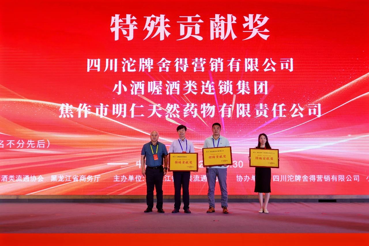 會議最后,為表彰“四川沱牌舍得營銷有限公司”、“小酒喔酒類連鎖集團(tuán)”“焦作市明仁天然藥物有限責(zé)任公司”為黑龍江省酒類流通協(xié)會第四屆第二次會員代表大會做出的貢獻(xiàn),大會為以上三家企業(yè)頒發(fā)了“特殊貢獻(xiàn)獎”,贏的了全場與會者的高度評價。