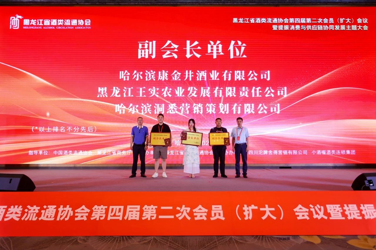 大會為新加入?yún)f(xié)會的副會長單位進(jìn)行授牌:“哈爾濱康金井酒業(yè)有限公司”、“黑龍江王實(shí)農(nóng)業(yè)發(fā)展有限責(zé)任公司”、“哈爾濱洞悉營銷策劃有限公司”。