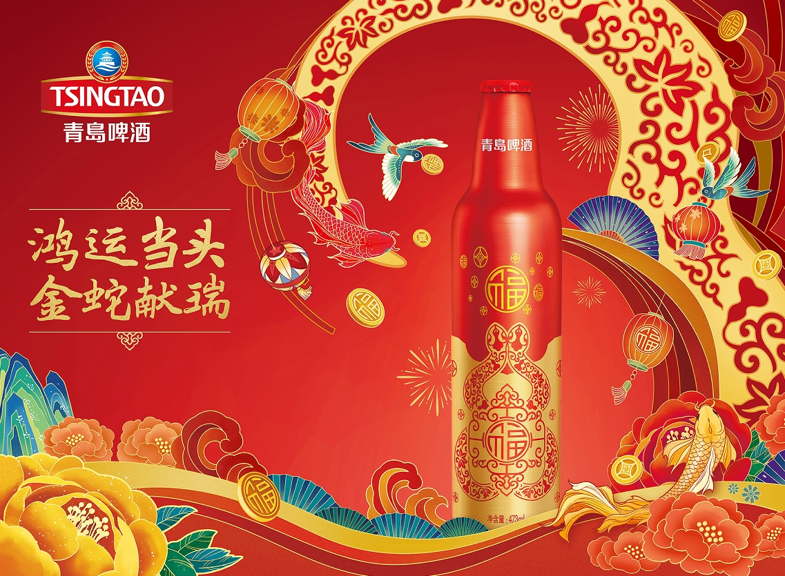 金蛇舞,迎新歲。過了臘八就是年,春節(jié)的腳步越來越近,年的味道也越來越濃,青島啤酒鴻運當(dāng)頭蛇年生肖產(chǎn)品,帶著“金蛇獻(xiàn)瑞 鴻運當(dāng)頭”的美好祝愿,應(yīng)時“紅火”上市。