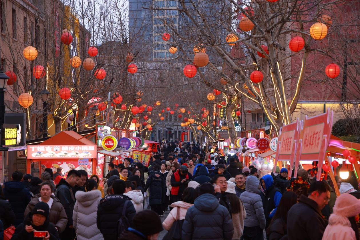 除了傳統的糖球、糖畫等年味年貨,面人、花燈非遺技藝作品,除了口碑品質,兼具文化內涵、科技含量、美學特征的產品成為蛇年春節消費者的“新寵”,在里院1903青島酒館,市民游客絡繹不絕,呈現出活力滿滿的消費新圖景。