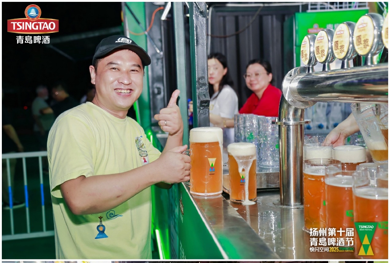 伴隨“蘇超”的熱潮,6月27日,2025年揚(yáng)州第十屆青島啤酒節(jié)在廣陵新城韻河灣夜市廣場啟幕。現(xiàn)場設(shè)置的“足球主題夜”將為市民游客大屏直播“蘇超”比賽,讓這份結(jié)合了運(yùn)動激情的夏夜歡聚味道更足。前來參加的市民表示,在現(xiàn)場體驗(yàn)如此沉浸的觀賽氛圍,不僅為綠茵場加油吶喊的勁頭更足,也讓喝酒碰杯、聊天暢飲更有感覺。