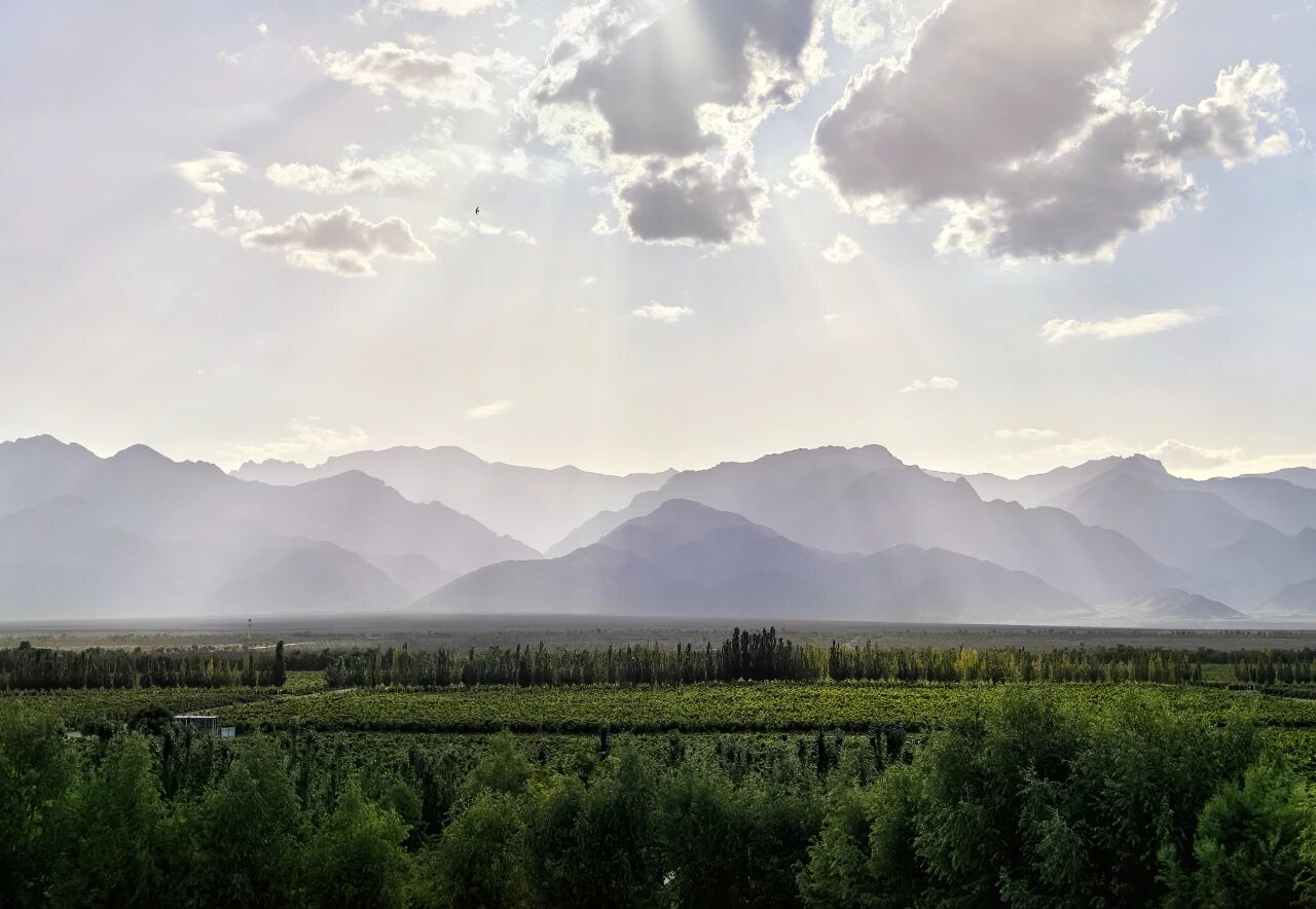坐落于北緯38°的黃金地帶,美賀莊園的風(fēng)土被賦予“山河眷顧”的詩意描繪:巍峨的賀蘭山如屏障般阻隔著風(fēng)沙與寒流,奔騰的黃河則以溫潤之水滋養(yǎng)萬物。超過3000小時的年日照、15℃以上的晝夜溫差,以及礫石與灌淤土交融的獨特土壤,共同塑造了酒莊葡萄酒的鮮明個性——果味豐沛,又不失清新酸度,單寧結(jié)構(gòu)平衡而富有表現(xiàn)力。